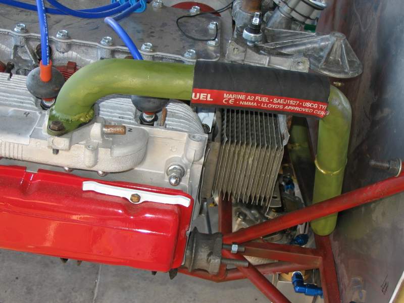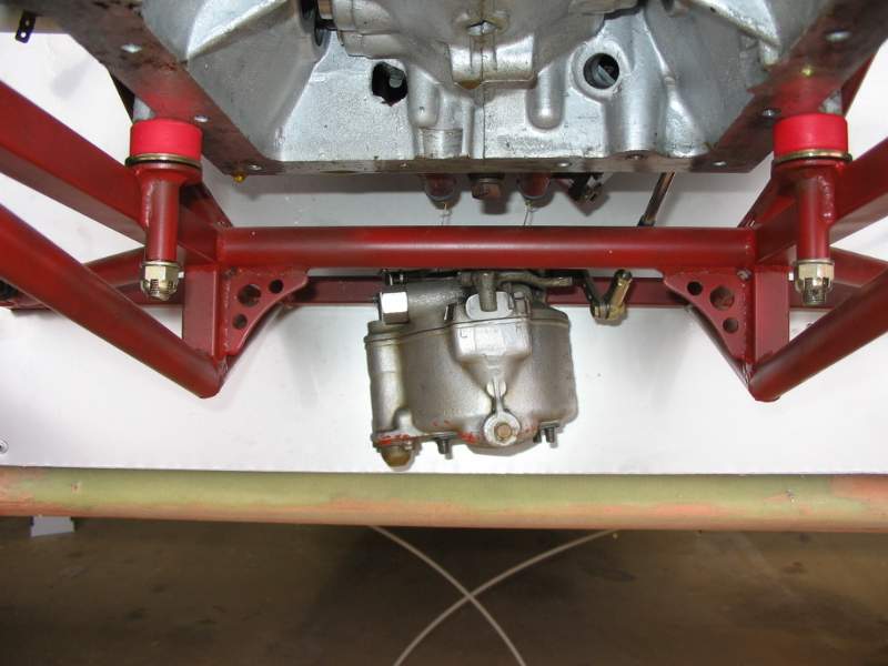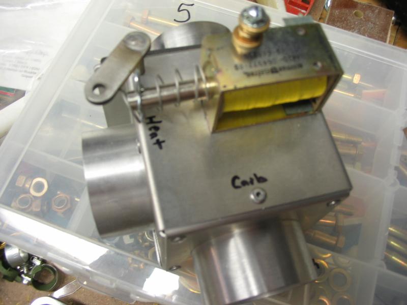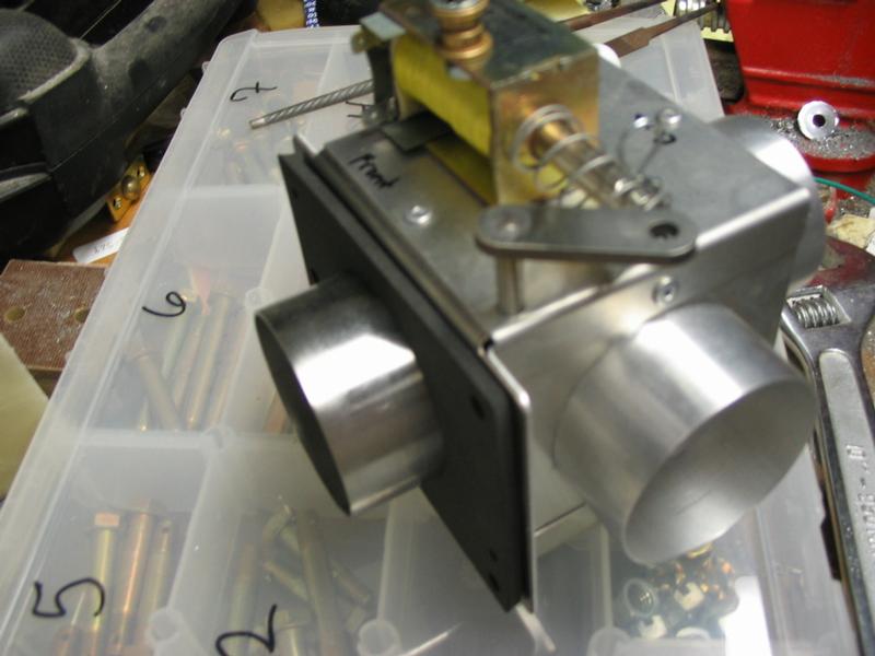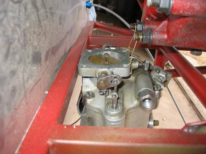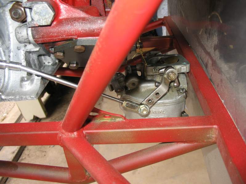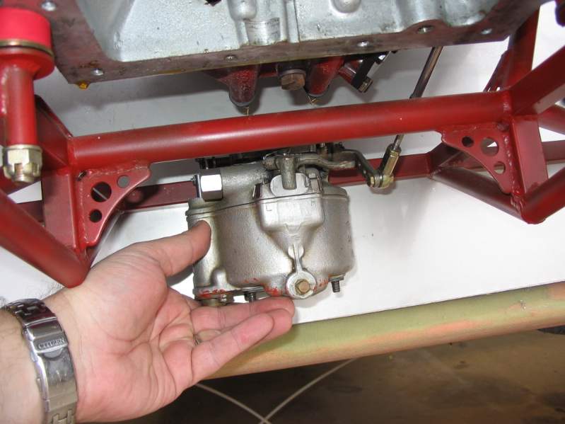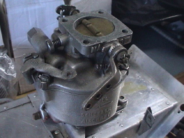 Foreground the accelerator pump, to the right the fuel inlet, far right the mixture lever, back center the throttle lever