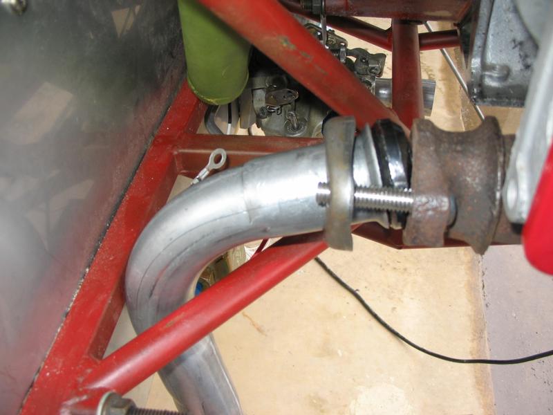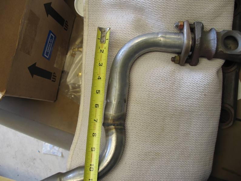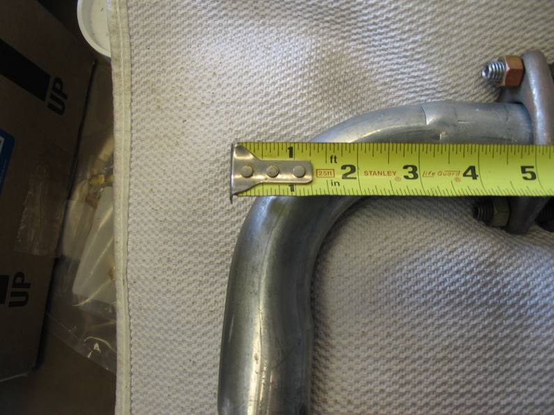 Corvair car exhaust 180 aluminized steel tube 1047R2 from Clarks Corvair fits perfectly and includes the flange. This is what it looks like if you bolt it on right out of the box. Obviously pointed the wrong way!