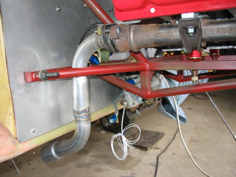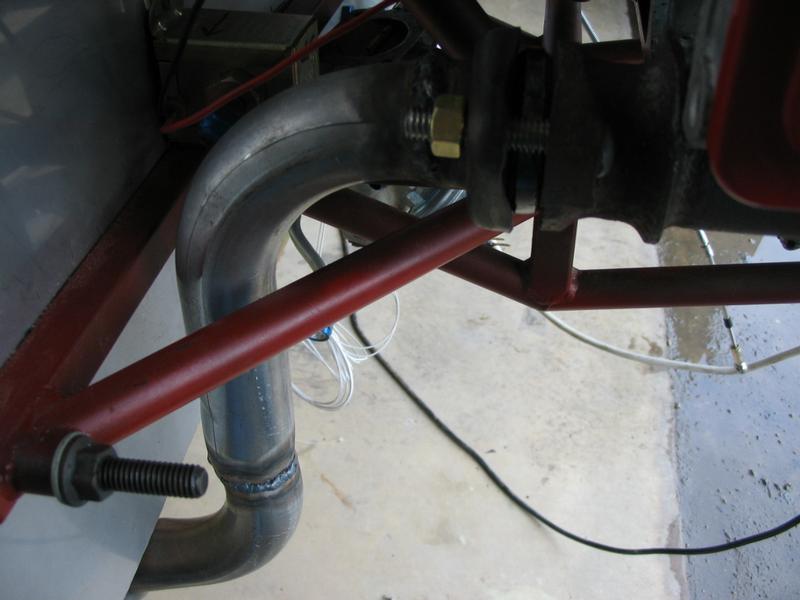 View of the 2 exhaust pipes running rearward now underneath the canard. (Ignore the rest of the junk in the photo!)