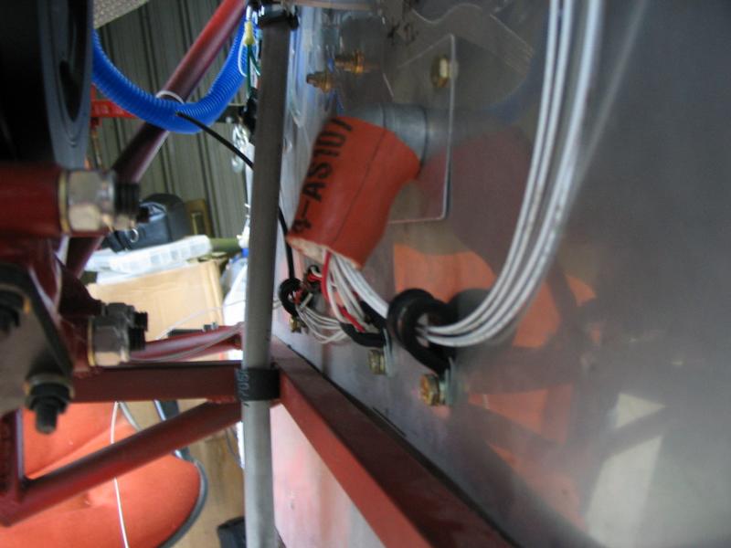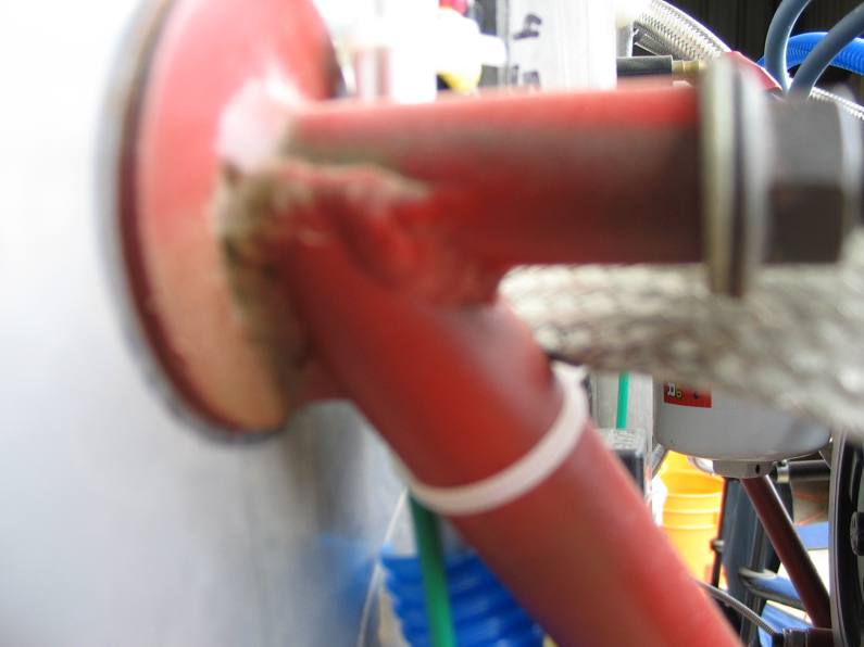 Firewall feedthrough for wires. This is a 90 degree tube that will be pumped full of firestop caulk and has a firesleeve clamped around it