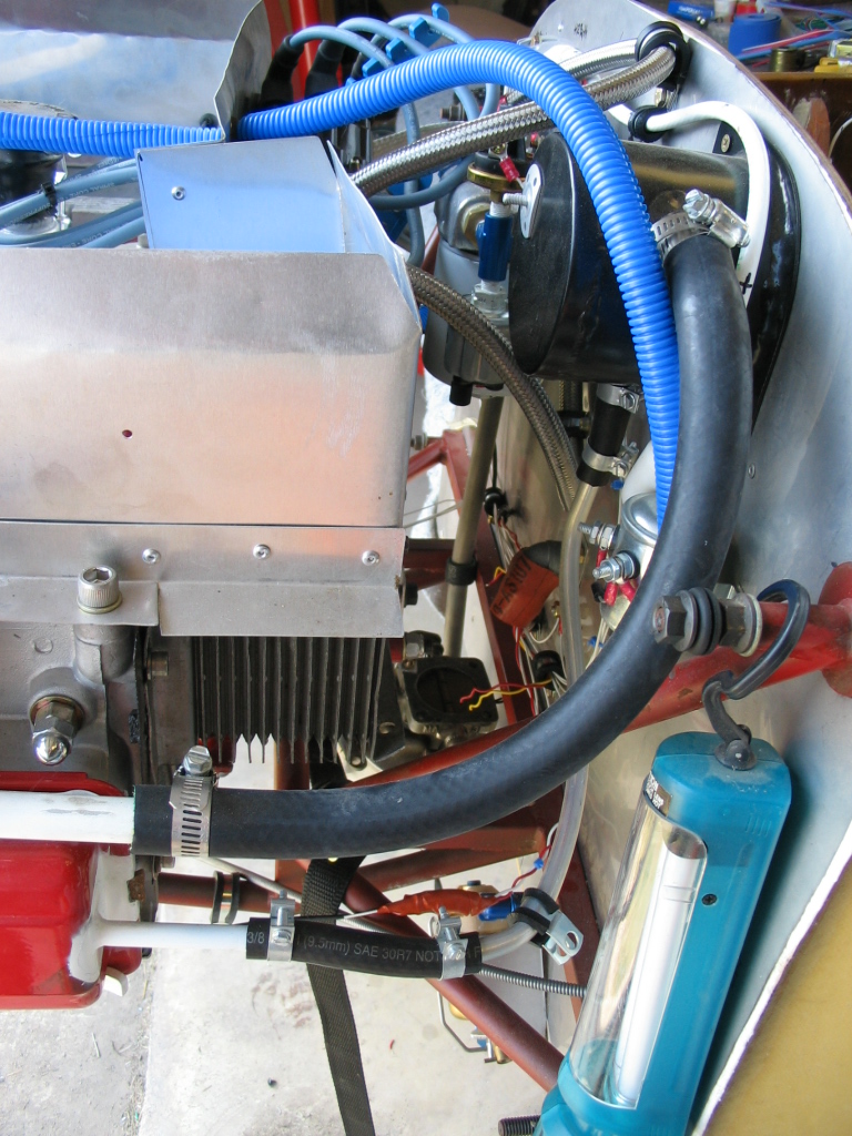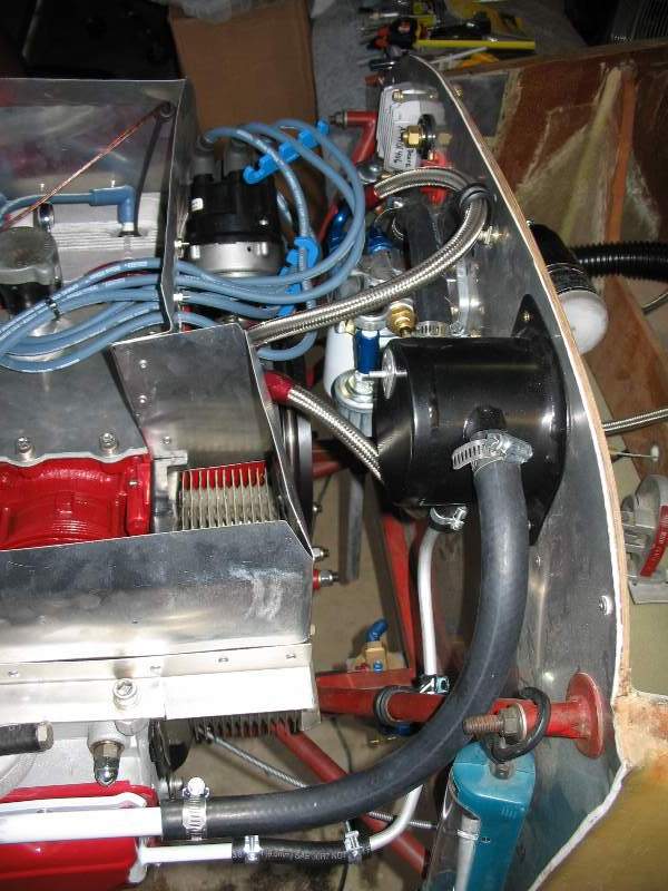 As you can see, getting a carb and airbox to fit under the engine is going to be a chore, due to the Dragonfly's TINY firewall!