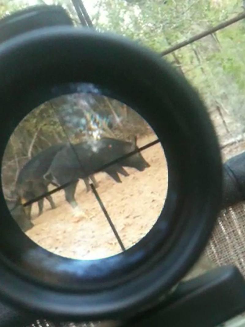 Here's what the hogs look like through the 4-power riflescope