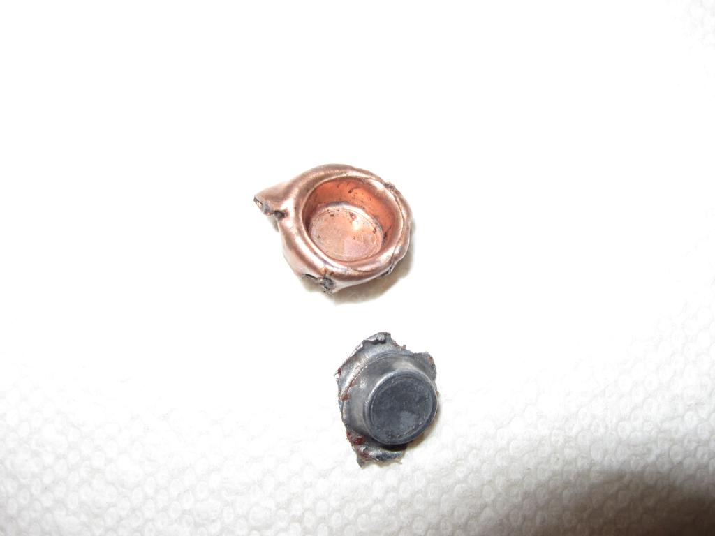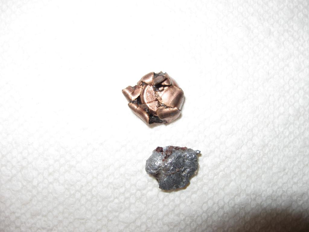 The other side of the bullet. It is a .450 Bushmaster 250 grain made by Hornady. Only about 130 grains remained.