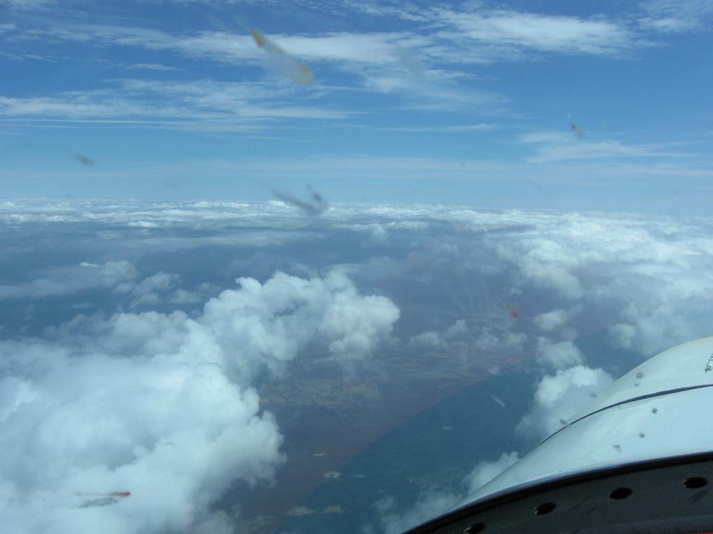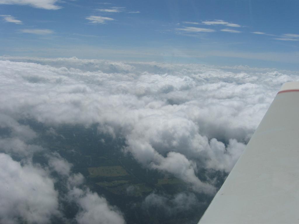 Ya always have to make sure there's a way down again. As long as there are holes in the cloud cover below, I can stay up here.