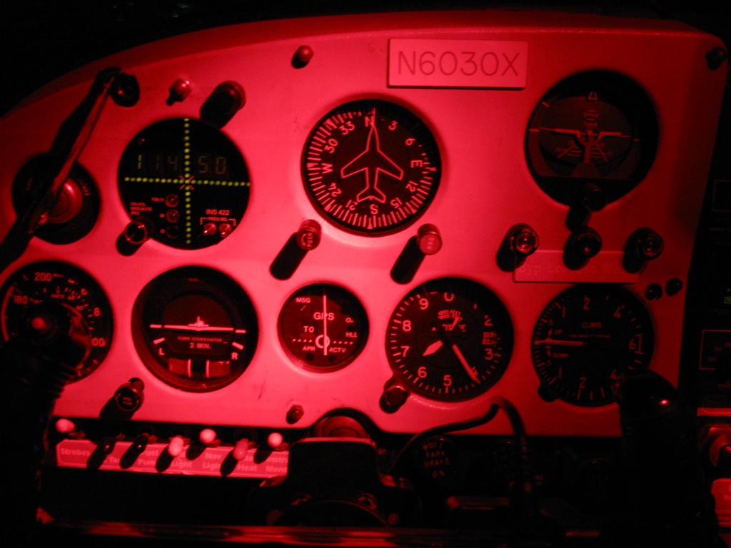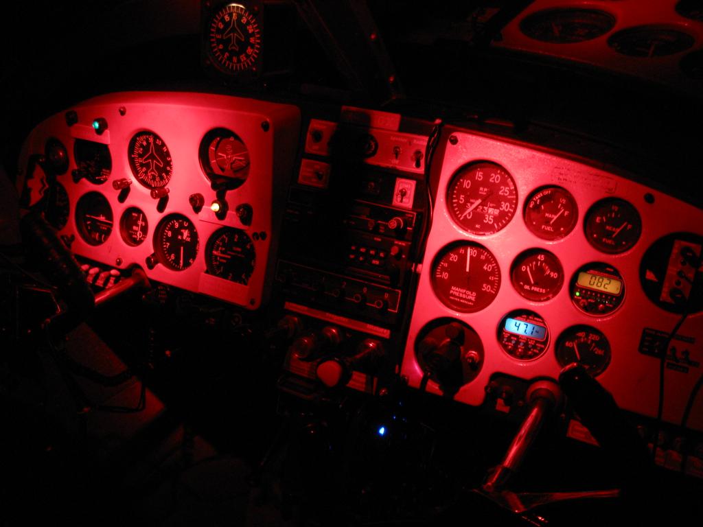Old-style incandescent illumination. Even with maximum brightness, you do have to aim the lamps pretty carefully at what instruments you want to see, because the 'spot' is pretty narrow.