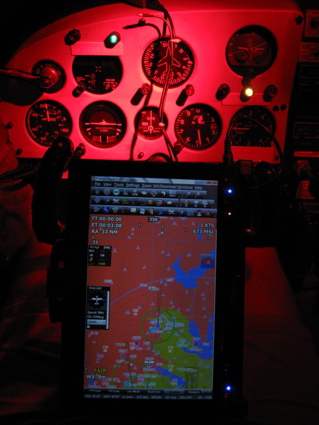 Night landing at 52F. One frame from the video taken on the trip to KDTN Jan 17, 2011 (see video below)