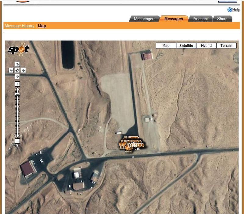A reminder of the small inaccuracy of GPS signals. I'm parked at UT25 in Monument Valley, Utah, eating lunch at the building you see at the South edge of the photo. Notice that the 10 minute interval tracks creep around in a small area around my actual location.