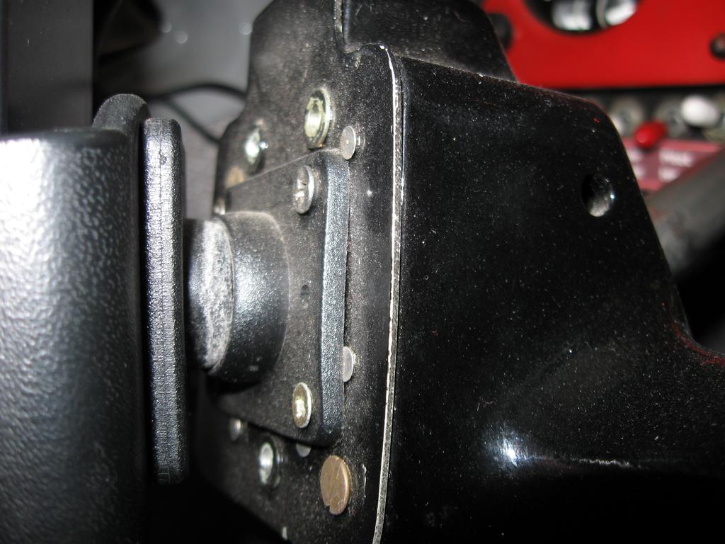 Closeup of swivel ball on ProClip yoke mount for the iPaq 4705. Notice the yoke has 4 holes drilled and tapped in a standard AMPS hole pattern, so that it can support a variety of different mounting mechanisms.