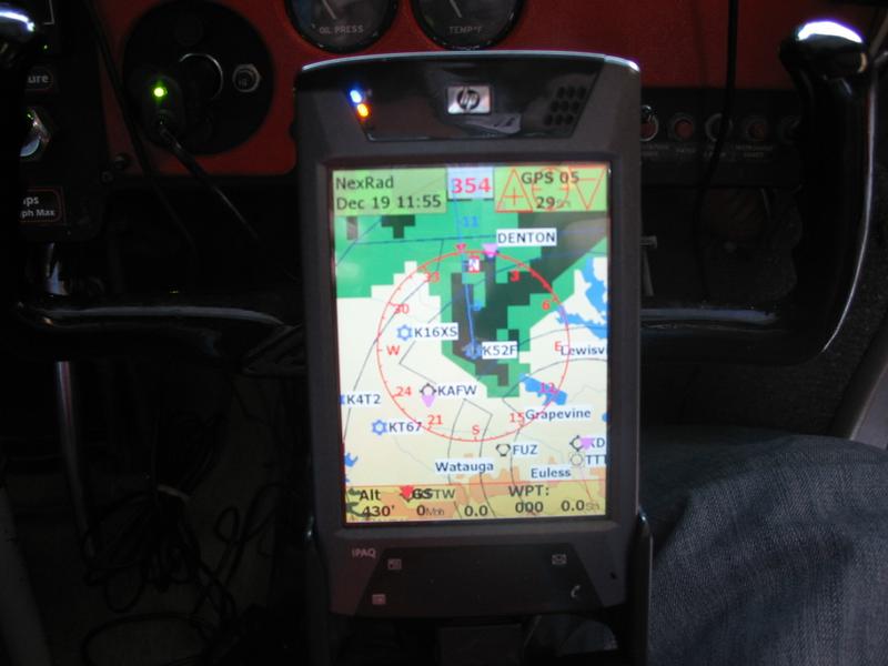 Old photo of the very first trial installation of HP iPAQ 4705 with NavAir software, Holux GR-231 Bluetooth GPS, and WxWorx XM Weather receiver on the right side, Garmin GPS 196 on the left. In smooth air, I prefer the ease of use of the touchscreen on the Windows Mobile device. But in rough air, it is easier to manipulate buttons than a touchscreen.