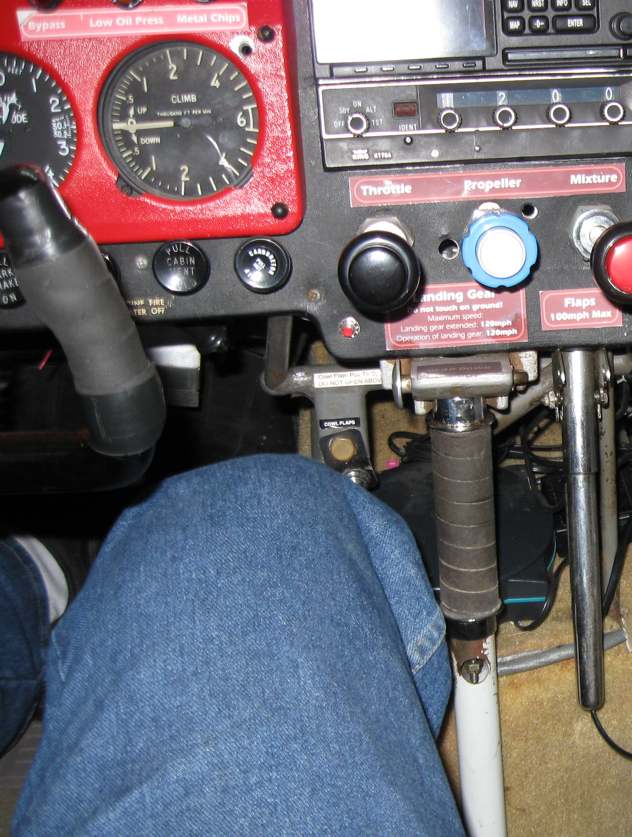 The WxWorx XM Weather receiver is visible to the right of my leg, velcroed to the top of the carpeted gear well
