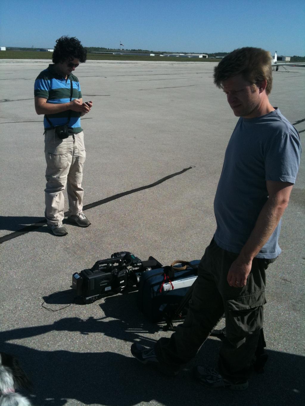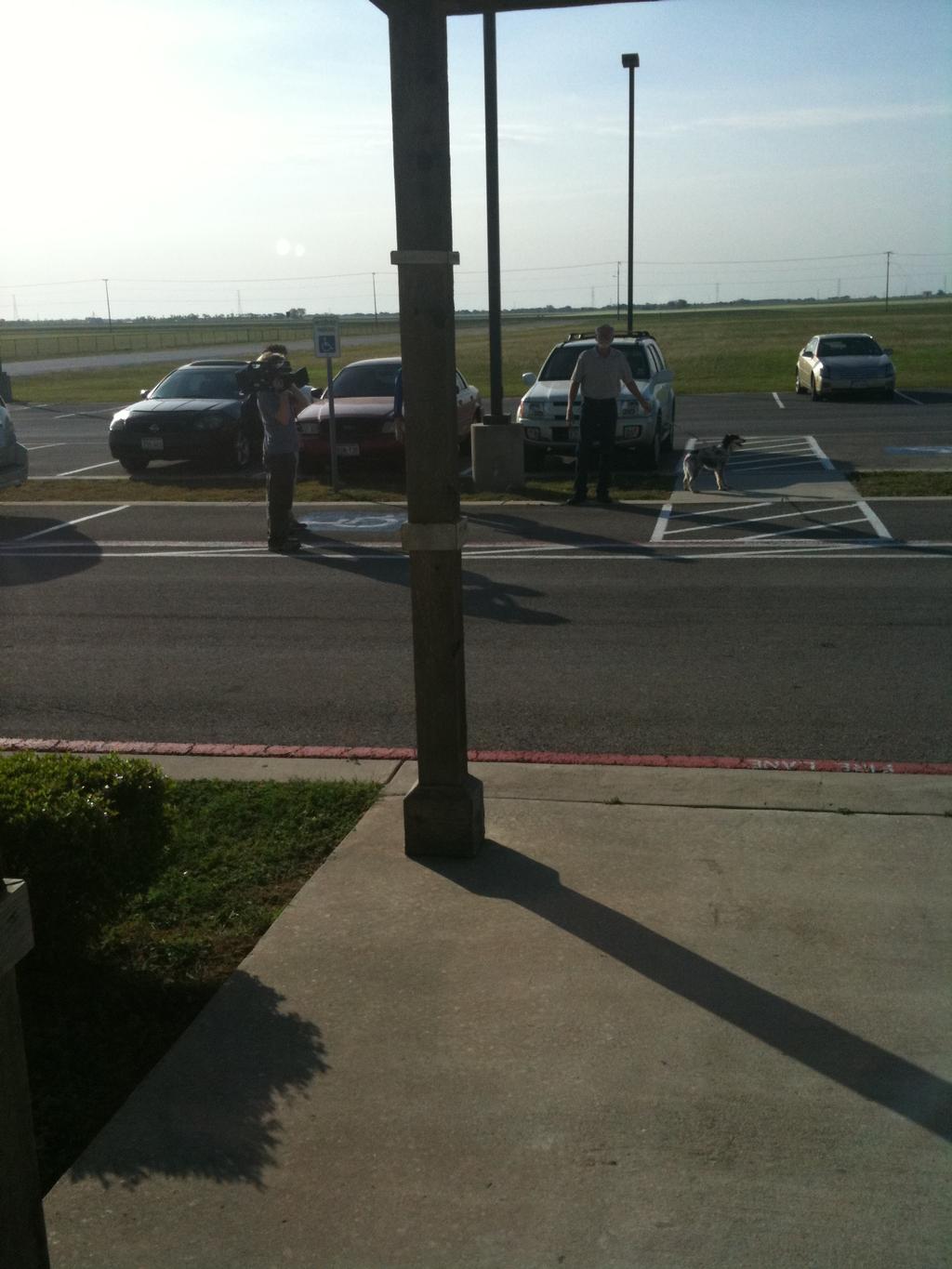 Waiting for the fosters Milber and Rick to arrive with Belle at the New Braunfels airport