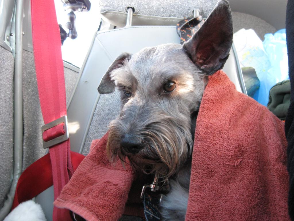 Blitz desperately needs a haircut! These were the first 2 dogs I allowed to ride in the front seat without a crate. Based on how nervous they were, I believe I am going to start using the crate again. I just don't think they like the sensations of flight sitting exposed in the front seat like that.