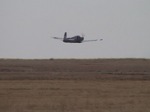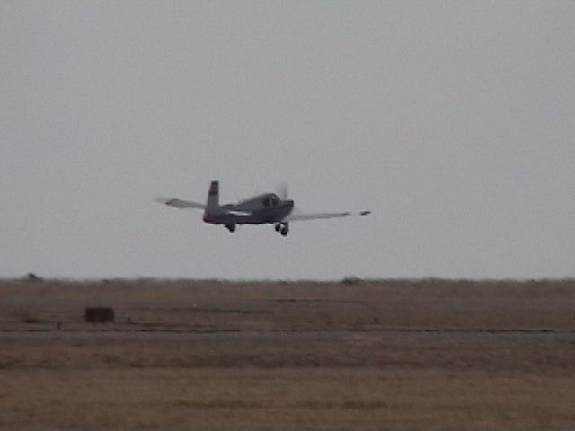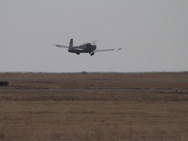 Watch how quickly the Mooney manual gear retracts. This is Frame 0 and the gear is down, as the airplane has just taken off. For reference, notice the tuft of grass ahead of the airplane, on the horizon, and the bale of hay behind the aircraft.