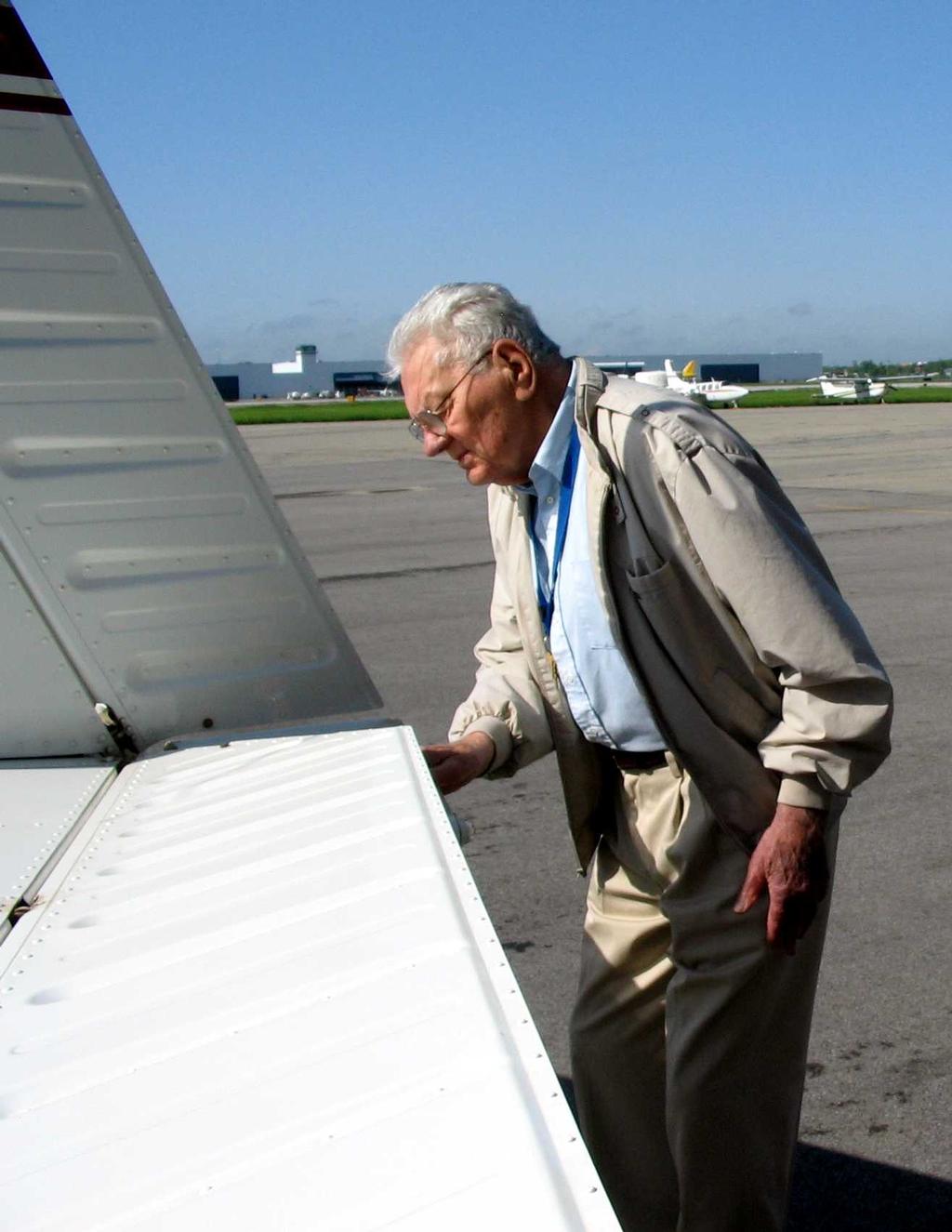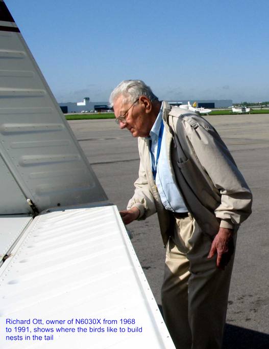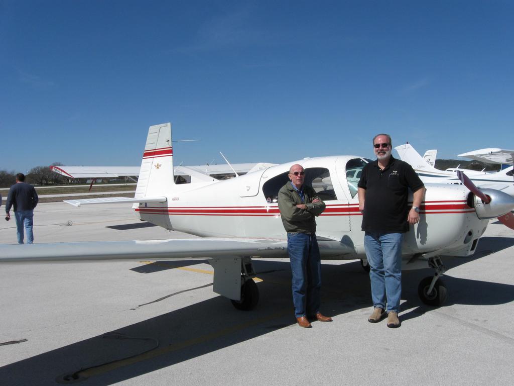 Nearly 50 years after the first test-flight of N6030X, its original test pilot, Bill Wheat (left) chats with current owner Dave Morris (right), in February 2010, at Fredericksburg, Texas, just a few miles from the factory in Kerrville.