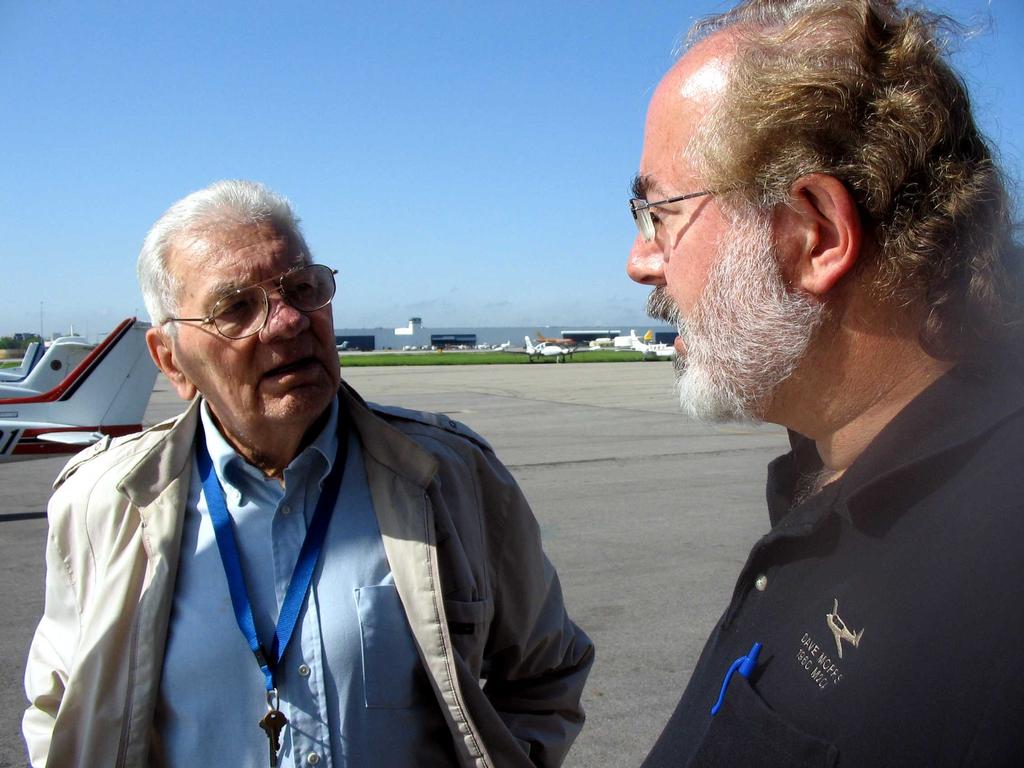 Alan, Dick, and Dave (left to right) talk about aviation 1968 versus 2008
