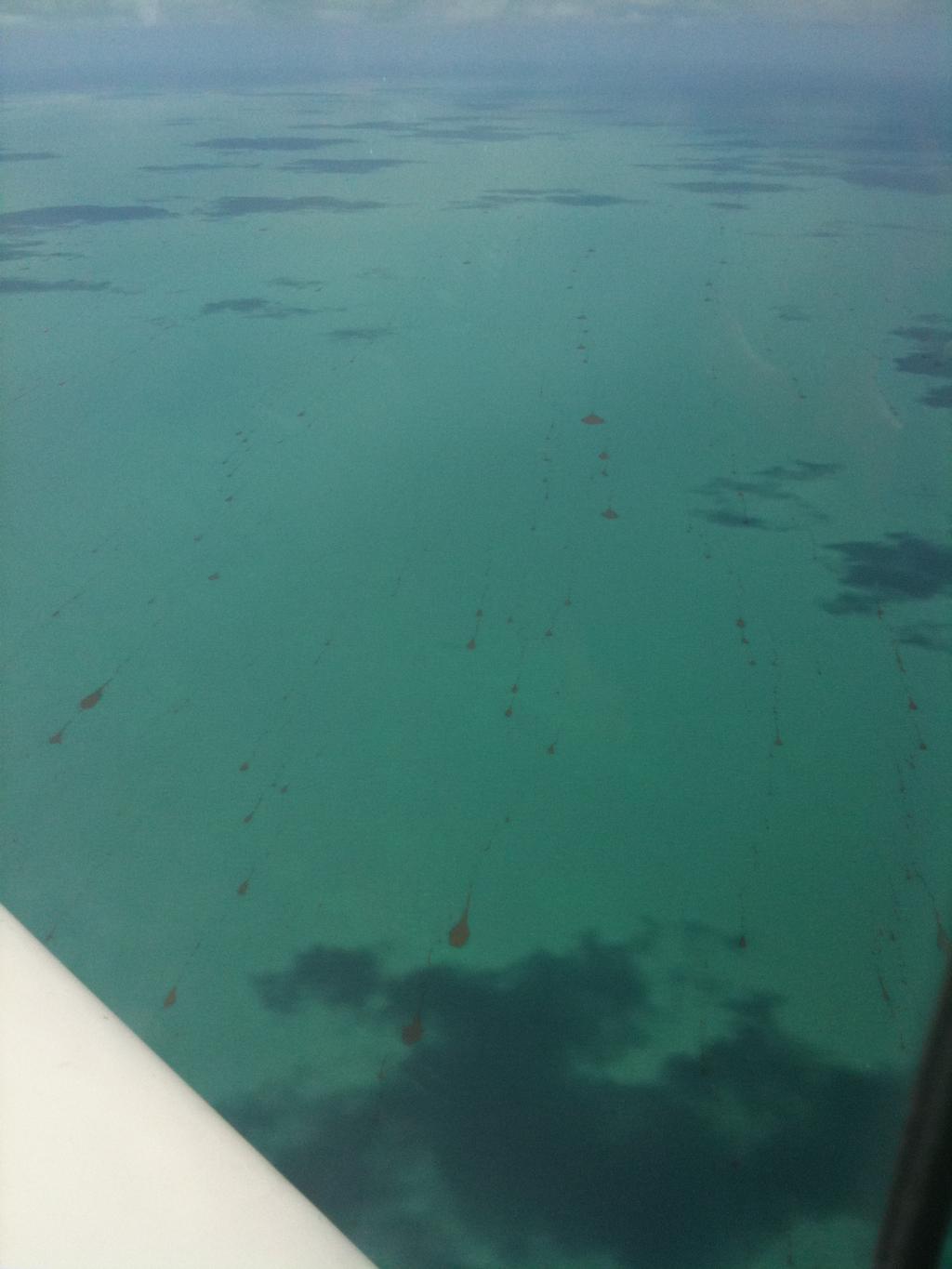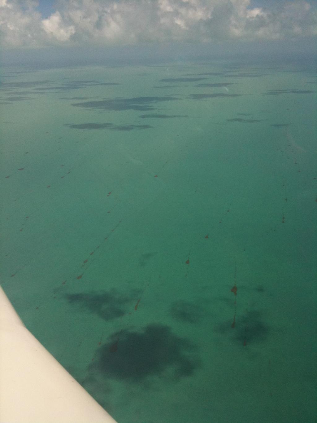 What in the heck are those weird dark spots in the water between the mainland and the Keys??? No silly, not the clouds. The little spots that look like someone dropped oil into the water and it drifted.