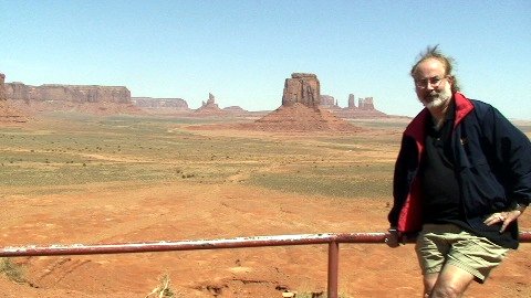 Merrick Butte (front) looks ideal for a Jeep commercial. To the left of it is West Mitten. Center field is large Sentinel Mesa, and to the right of it the spire called Big Indian. Far background is Eagle Mesa on the left, then Sitting Hen, etc